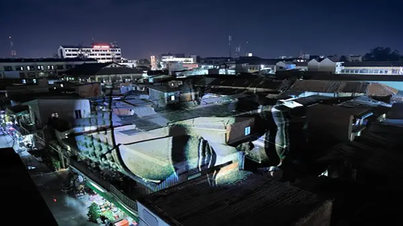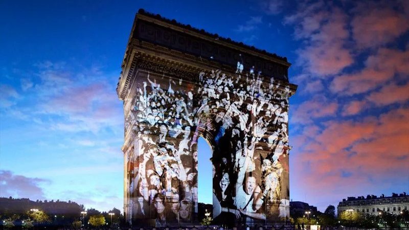 在法国的塞纳河摇滚节十周年纪念日,他将公众的各种照片投影到具有象征意义的建筑遗存上,创造了一个超现实的维度,在这个维度上,我们历史的人类轮廓显得栩栩如生。