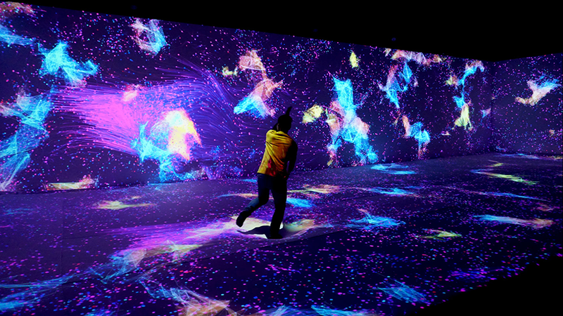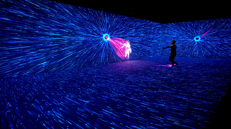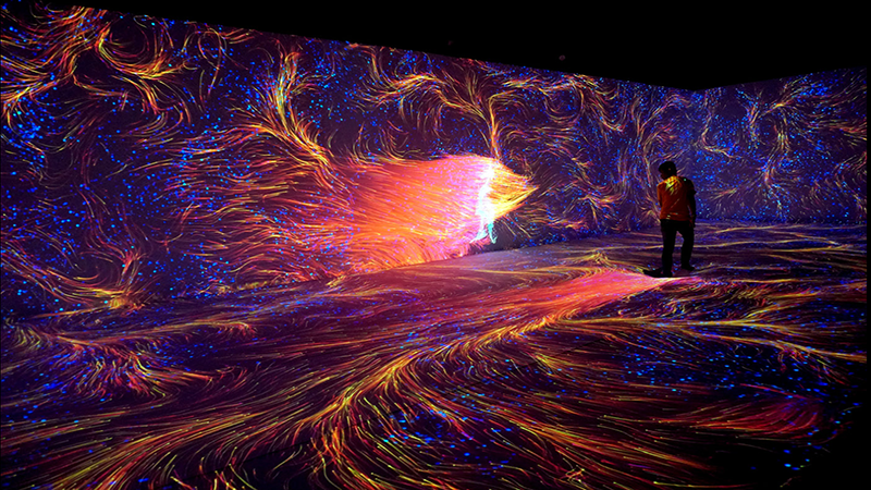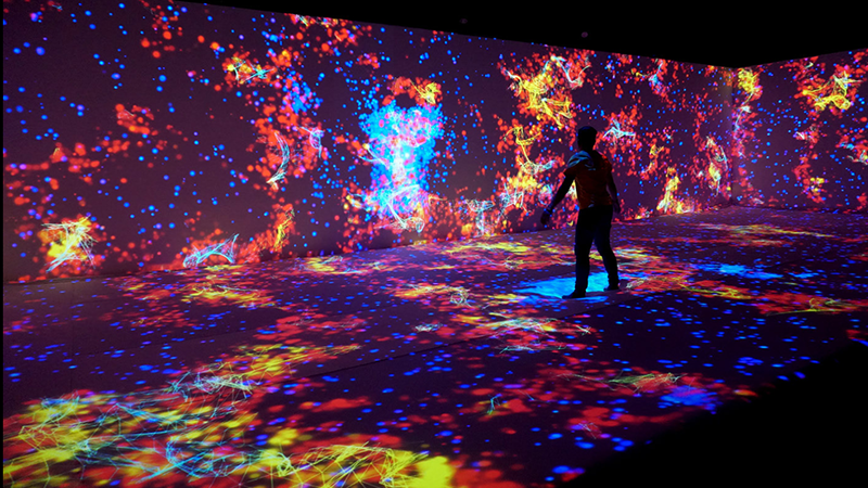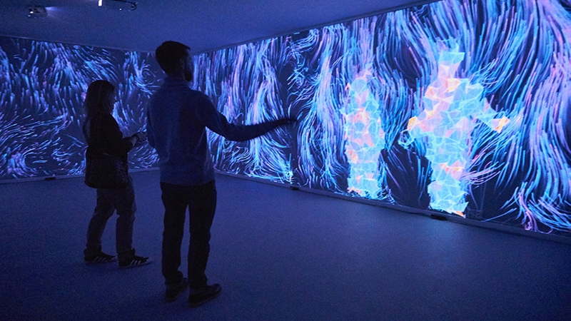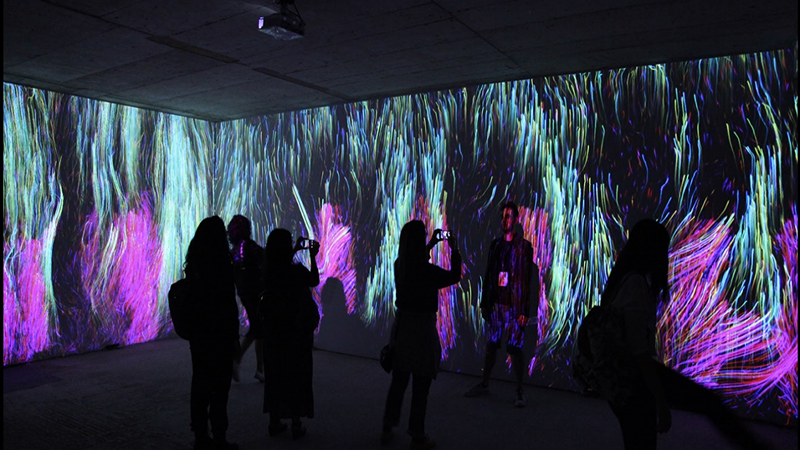 这个实验室由视听艺术家组成,他们探索使用视频、声音和灯光、跟踪技术来产生互动数字影像,借助数学算法对系统感知的图像和声音进行处理,来生成艺术化图形。这种方式让观众沉浸在数字空间中,互动的方式打破了感官感知的定型观念,沉浸效应使的观众更趋于感性,并激发内心的自发情绪。