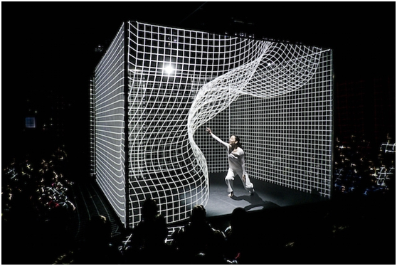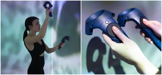 但ETEREshop的3D投影立方体的核心特点是,由于使用了先进的投影和运动捕捉技术,并结合VR控制器,所有效果都可以由表演人员实时操作。两个运动控制器将实时跟踪和捕捉演员的肢体动作,并触发投影3D效果的即时精确响应。