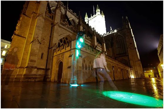 好的创意,不一定基于复杂的技术。Catch me now是一个普通的聚光灯,通过叠加了对游客位置感知的传感器,借助创意编程,成为一个有趣的互动装置。