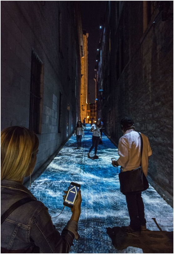 老蒙特利尔周围的18个景点被选为展示的空间,这些空间里都设有建筑投影装置,它将蒙特利尔历史上的一个重要时刻带到了生活中。为了进一步理解每个装置讲述的故事,你需要下载一个免费的应用程序,你可以开始展示、收听音频,了解历史。