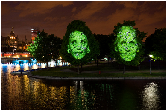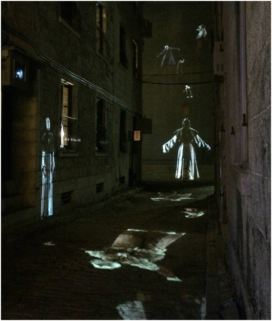 这些投影由各处隐藏在墙体、灯柱中的高亮度投影机呈现