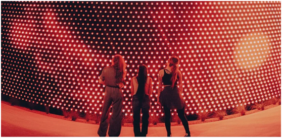 Sphere Studios和SACO Technologies合作开发了本项目的显示部分,Sphere Studies是一家沉浸式内容工作室,专门为Sphere创造现场娱乐体验,SACO Technologies是固态LED视频照明和媒体解决方案的行业领导者。工作室团队还与7thSense合作,这是一家专门从事基于媒体的景点的创意软件和技术公司,使用先进的媒体服务器、像素处理和表演控制技术在球体屏幕上渲染视频内容。