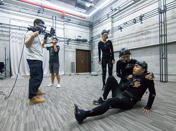 明通虚拟拍摄解决方案在光学空间定位系统基础上,结合绿幕抠像系统、混合虚拟拍摄设备、面部表情捕捉等系统,将事先在计算机图形环境中生成的虚拟背景、虚拟道具、虚拟人物等与在摄影棚中实拍的真实人物角色、景物等进行实时合成、实时监看。面向影视动漫,数字多媒体交互等行业,以ONLINE(实时在线编辑)的形式,高效率、低成本地解决Previs/Layout实时预览、绿幕实时抠像、场景和演员的三维空间替换等问题。将摄影机实拍画面所处的三维空间与虚拟场景的三维空间通过3D引擎进行实时匹配,对画面构成、摄影机运动轨迹等进行实时调度和预览,便于导演和创意团队即时调整创意和拍摄流程。